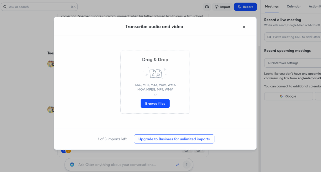 Otter.ai is a household name in transcription, and it’s one of the best free audio to text converter options for teams. What makes it stand out is its cloud collaboration tools and speaker identification features. They are perfect for meetings and group projects.