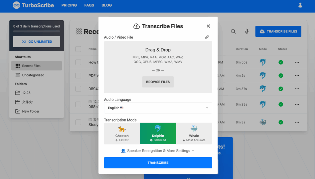 Tool 2: TurboScribe – Transcription Speed, Multilingual Support & Pros & Cons